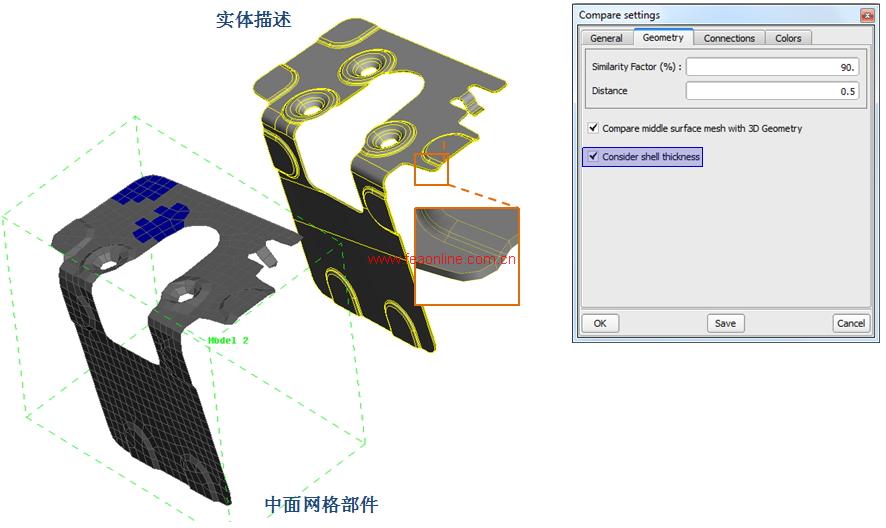 对比实体描述和中面网格部件